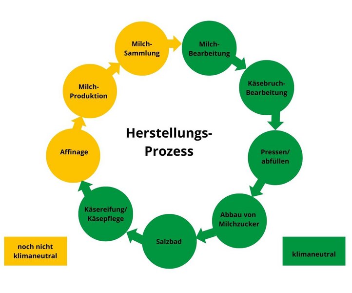 Die Arbeitsschritte der Käseproduktion als CO2-Verursacher